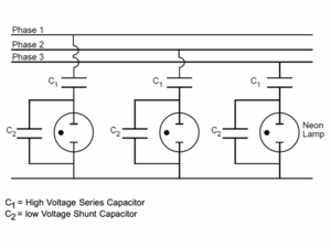 The capacitors described in this section are used in circuitry indicating the presence of voltage on conductors. A capacitor voltage divider enables a small neon lamp to be illuminated or alternatively the low voltage signal may be used to feed a sensing circuit which monitors for supply failure and circuit condition.