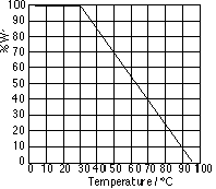 If the capacitors are operated in an ambient temperature higher than 30°C then the reactive power rating must be reduced as shown in the graph.