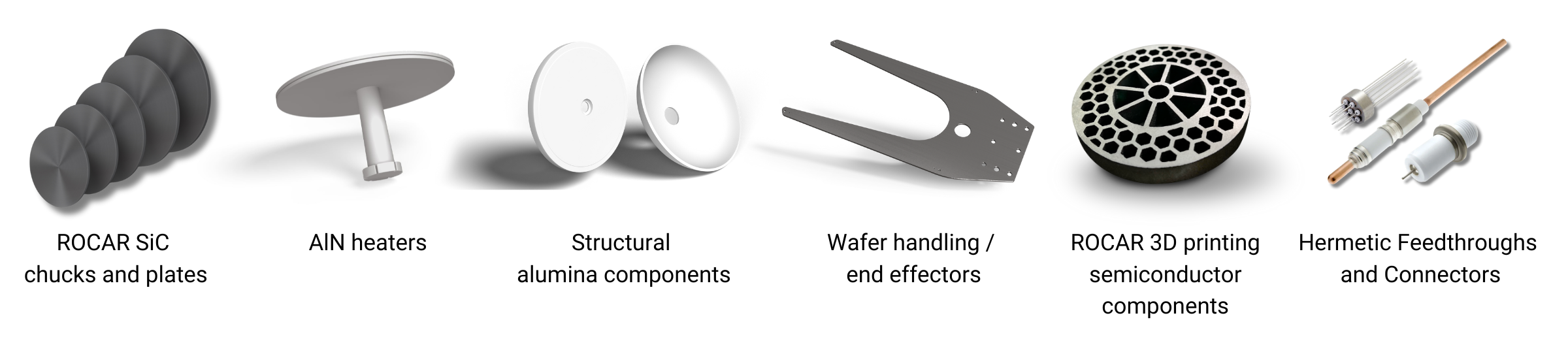 - Silicon carbide (SiC): High hardness, wear resistance, high temperature resistance and good thermal conductivity. CeramTec offers ROCAR® and focusses on process integration in the manufacture of SiSiC plates for semiconductor machines.